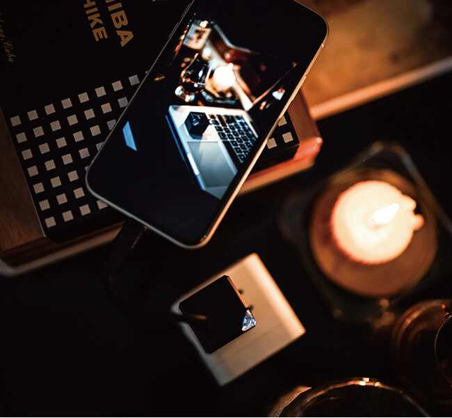 インテリアにフィットする絶妙な明るさのランプが、ジルコン部分をさらに引き立てます。
