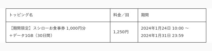 詳細はこちら( https://povo.jp/spec/topping/1G_30d_sushiro/ )