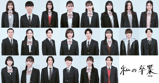 橋本亮介役の渡邉多緒です。第5期「私の卒業」プロジェクトに参加できることを大変光栄に思っています。僕は、初めてオーディションで勝ち取ったのがこの作品で、作品の一員としての責任の大きさや役に入っていくということの面白さを改めて感じました。俳優としてだけでなく、これからの人生において大切なことを日々学んでいます。長期で役に向き合うことは今回が初めてで、周りの方々のアドバイスや、より良い作品にしようと切磋琢磨してくれる仲間たちのおかげで、役を深めることができています。僕にとって俳優人生のスタートとなるこの作品が、観てくださる方々の背中を押す作品になることを願っています。