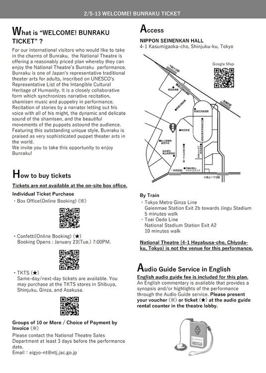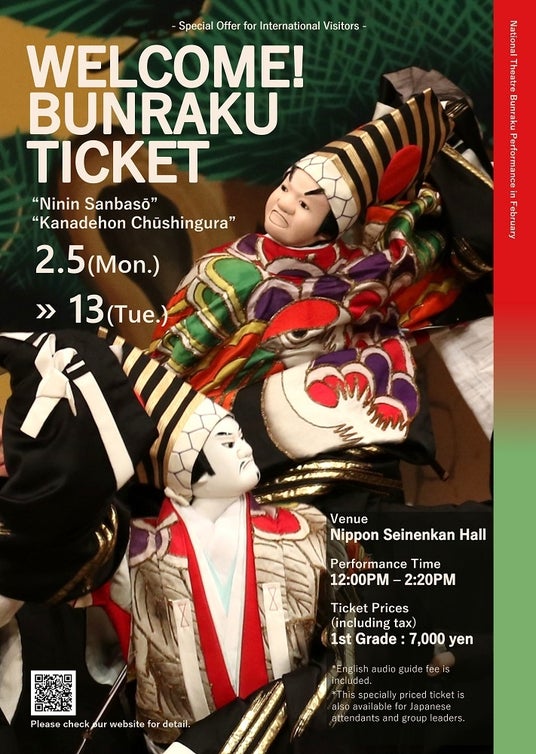 【国立劇場主催 2月文楽公演】WELCOME!BUNRAKU TICKET(外国人向け特別プラン)