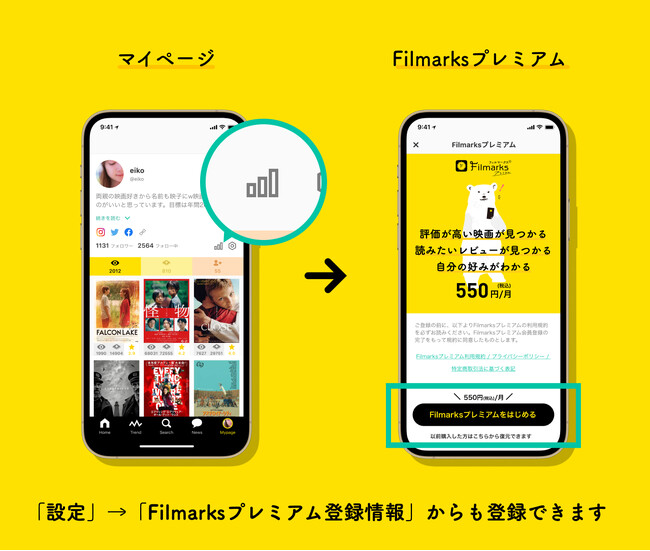 新作・旧作に関わらず、面白い作品を探したい、名作レビューに出会いたい、記録した鑑賞データをもっと楽しく見たいという皆さまに向けて、映画やドラマ鑑賞をより快適に楽しんで頂ける機能や限定グッズプレゼントの機会をご提供する月額550円/税込の会員サービスです。