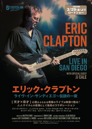 IAC MUSIC JAPAN(株式会社インター・アート・コミッティーズ)では コンサート映像上映シリーズ〈Screen The Live〉を2023年より始動し、 今回第2弾としてエリック・クラプトンが2007年3月15日に米サンディエゴで開催したコンサートを収録した映像作、 『エリック・クラプトン : ライヴ・イン・サンディエゴ〜伝説の一夜』を Santa Barbara Pictures(マリブ・コーポレーションの映画事業)配給協力のもと、 全国の劇場で2024年3月29日(金)からロードショーいたします。