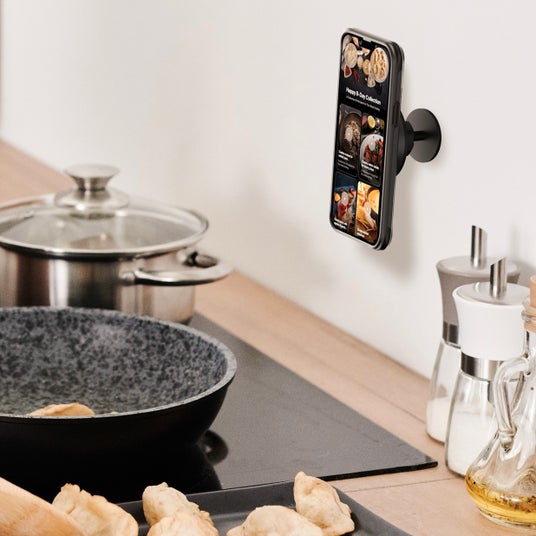壁に穴を開けずに取り付け可能で、料理中のレシピ確認や、動画鑑賞に最適です。