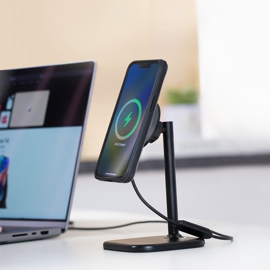 チャージャー付きで常に充電の心配無く、様々な角度に調節してスマートフォンをご利用いただけます。