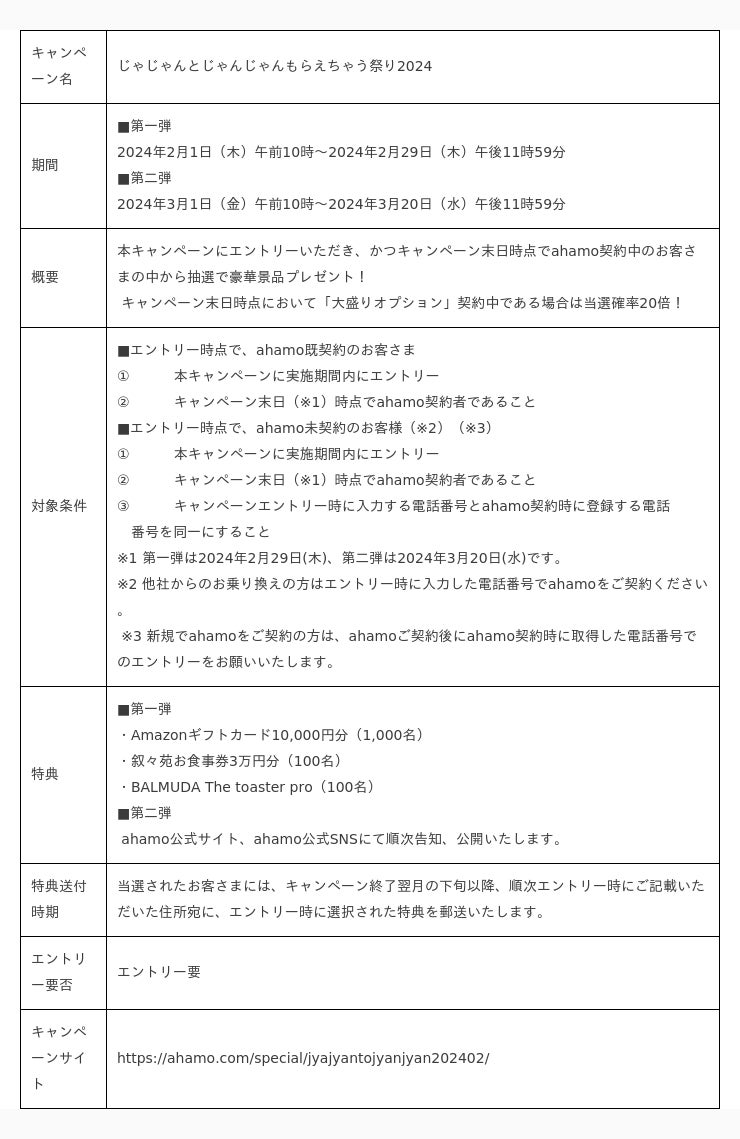 ahamo「じゃじゃんとじゃんじゃんもらえちゃう祭り2024」を開催