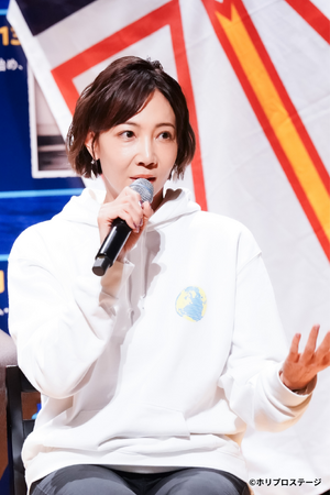 私の演じるビバリーはアメリカンエアライン初の女性パイロットの役です。物語上の役割としては緊張感をもって切り込んでいく、ポイントとなる役でもあるのですが、カンパニー内では先ほどの(橋本)さとしさんのように可愛らしい先輩方がたくさんいらして、幸せだなあと思ってやっています。この作品は9.11の被災地での状況が舞台上で描かれているのですが、3.11や能登の地震に対して私たちが抱える心の辛さや苦しみと一緒なんだと気づきました。日本の方が観ても誰もが共感できるものをちゃんと受け取って、持って帰ることができる作品だと思います。
