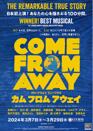 数々の演劇賞を受賞したブロードウェイミュージカル『カム フロム アウェイ』が2024年3月に豪華キャストで日本初演決定!日生劇場60周年イヤーの締めくくりを飾る。