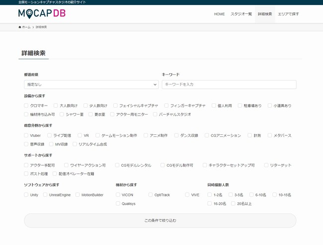 全国モーションキャプチャスタジオ紹介サイト「モーキャプDB」をリリース