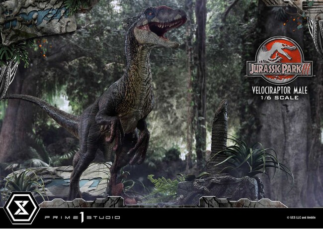 映画『ジュラシック・パーク 3』から、雄のヴェロキラプトルが1/6スケールのスタチューになって登場