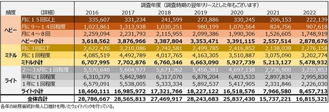 出典:日本サウナ・温冷浴総合研究所 「サウナ愛好家推計(人口)」(2016〜2022)