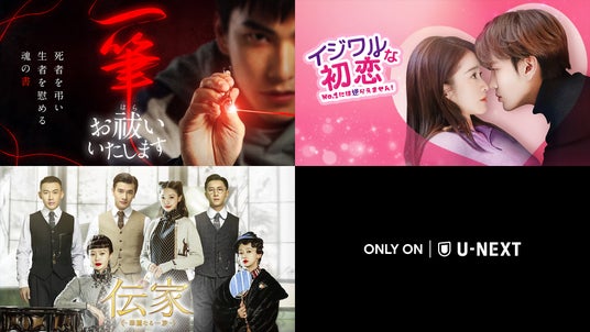 USEN-NEXT GROUPの株式会社U-NEXT(本社:東京都品川区、代表取締役社長:堤 天心)が運営する動画配信サービス「U-NEXT」は、2024年2月9日(金)より台湾ドラマ『一筆お祓いいたします』、2月10日(土)より中国ドラマ『イジワルな初恋〜No.1には逆らえません!〜』『伝家(でんか)〜華麗なる一族〜』を独占配信いたします。
