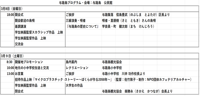 特別招待作品【マイクロプラスチック・ストーリー〜僕らが作る2050年〜】の上映決定と開催プログラム【与路島プログラム】の詳細について