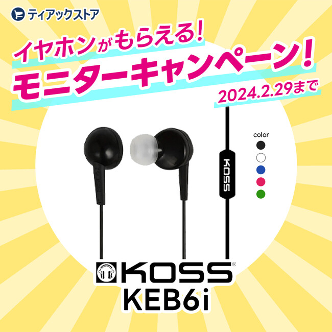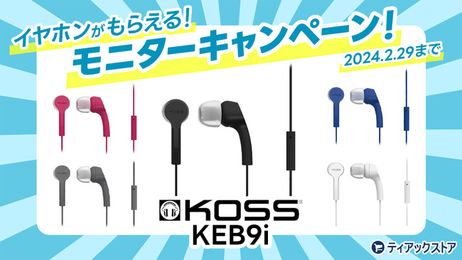 ティアック株式会社が運営する公式オンラインストア「ティアックストア」は、新たに取り扱いを開始したKOSSブランドのイヤホン『KEB9i』、『KEB6i』2商品のモニター募集を2024年2月9日から2月29日の間実施いたします。