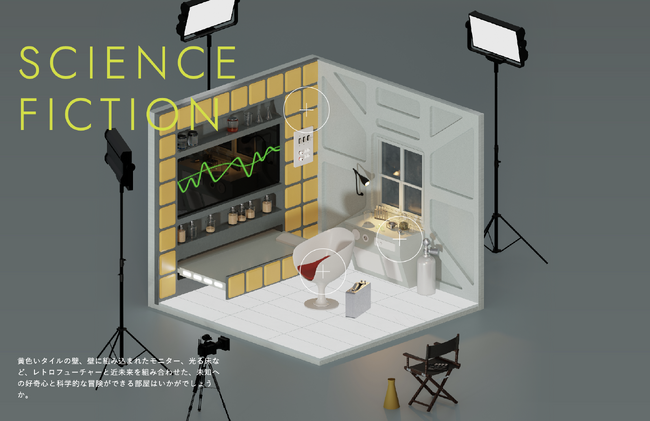 映画『メン・イン・ブラック』に出てくる卵型の椅子や、1960年代の宇宙探査のテーマを引き立てる、映画『2001年宇宙の旅』に出てくる黄色いタイルの壁を採用。レトロと近未来のデザインを組み合わせた内装で、時代を超えた宇宙や近未来をテーマにした部屋が完成しました。