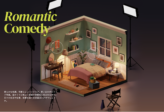 「AI SAMANSA」では、AIが世界中の映像ビッグデータを学習し、ミステリー、サイエンスフィクション、ロマンティックコメディなど、それぞれの独特な世界観やスタイルを取り入れた住宅デザインを開発。映画の中の家や部屋は、単なる背景ではなく、特定の感情やストーリーを伝えるために緻密に表現されています。この豊かなビジュアルリソースを活用し、空間創造の新たな可能性を提案します。
