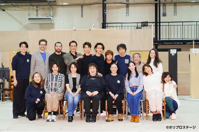 上段左より:上條 駿*、ダニエル・ゴールドスタイン(演出補)、吉原光夫、橋本さとし、田代万里生、加藤和樹、浦井健治、石川 禅、安福 毅*、ジェーン・バンティング(振付補)/下段左より:湊 陽奈*、柚希礼音、濱田めぐみ、森 公美子、シルビア・グラブ、咲妃みゆ、安蘭けい、栗山絵美*