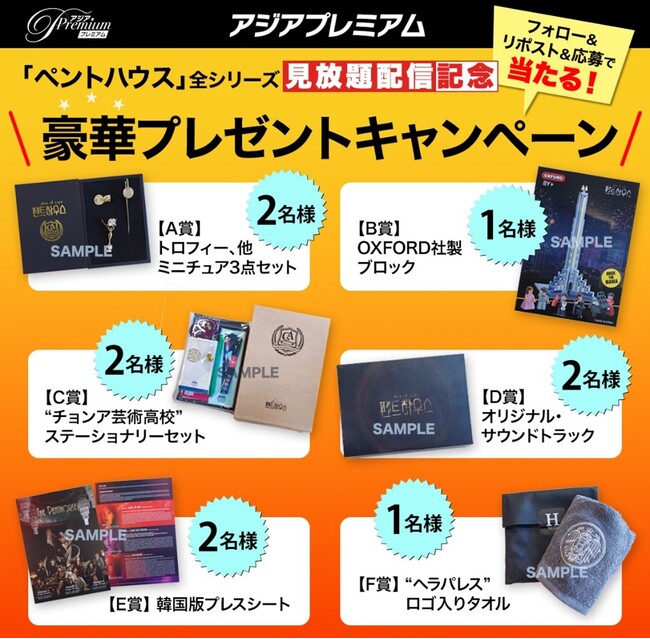 『ドラマ&エンタメ☆アジアPremium』フォロー&リポスト&応募で当たる!「ペントハウス」全シリーズ見放題配信記念 プレゼントキャンペーン!!