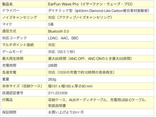 ノイキャン&ハイレゾワイヤレス、大口径40mmDLC 振動板のBluetoothヘッドホン「EarFun Wave Pro」