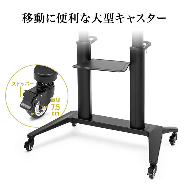 65から84インチまでの大型ディスプレイに対応したキャスター・カメラ台・棚付きのディスプレイスタンドを2月4日発売