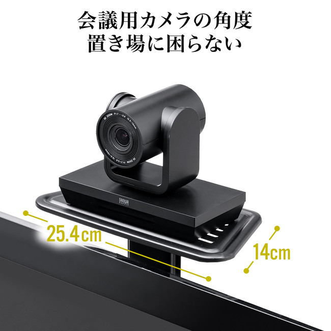 WEBカメラや周辺機器などを載せることができる棚板付きで、高さの変更も可能です。