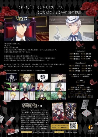 その劇場アニメである『「ツキウタ。」劇場版 RABBITS KINGDOM THE MOVIE』は、現実世界とは異なるif世界の物語を展開。現実世界ではアイドルである12人が、黒兎王国・白兎王国という異世界の住人となり、ふだんの“アイドルな日常”とは打って変わった、本格的なダーク・ファンタジーを描きます。