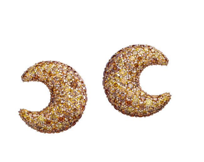 デミ・ムーアは「レッド カーペット コレクション」から98.58ctのブラウン&イエローダイヤモンドのイヤリングをセレクト。「ハイジュエリー コレクション」からイエローダイヤモンドのブレスレットと、センターに大粒のイエローダイヤモンドをセットしたリングを2点をコーディネート。