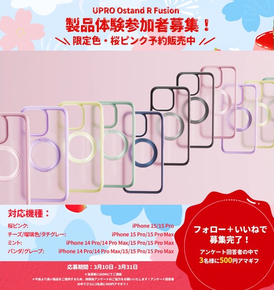今回春限定色・桜ピンク「UPRO Ostand R Fusion」の発売をもって、「UPRO Ostand R Fusion」シリーズを対象に製品体験キャンペーンを開催!