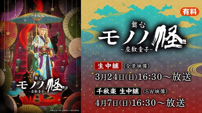 ニコニコ生放送にて、舞台『モノノ怪〜座敷童子〜』【3月24日(日)16:30公演/4月7日(日)千秋楽16:30公演】のライブ配信が決定しました!