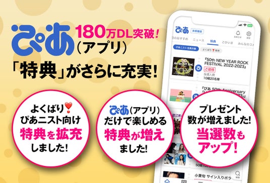 「ぴあ」アプリは累計180万DLを突破。プレミアムな読者特典も続々追加中!!