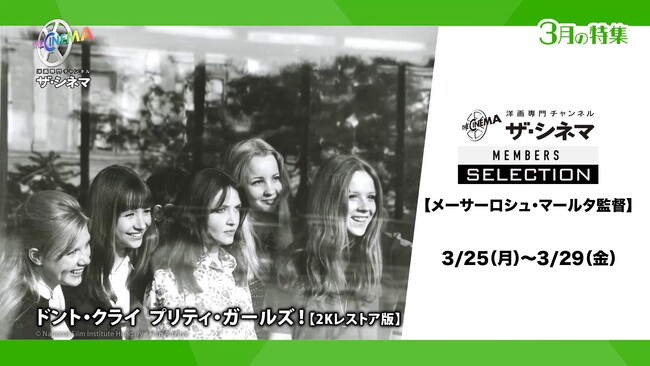 洋画専門チャンネルザ・シネマ(AXN株式会社、本社:東京都渋谷区、代表取締役社長 大園天樹)では、 【ザ・シネマメンバーズ セレクション】として、女性監督として初めてベルリン国際映画祭最高賞(金熊賞)を受賞した“ハンガリーの至宝”メーサーロシュ・マールタ監督作を3月にテレビ初放送いたします。3月25日(月)〜29日(金)の5日間にレストア版5作品を特集放送します。