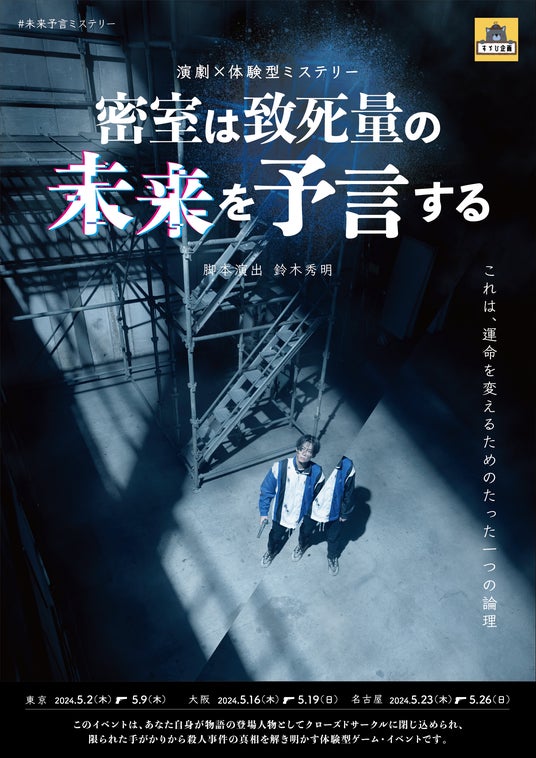 演劇を取り入れた推理体験の最高峰とも言えるイベント“演劇×体験型ミステリー”を企画運営する「すゞひ企画(本社:神奈川県相模原市、代表者:鈴木秀明)」は、最新作『密室は致死量の未来を予言する』を、東京、大阪、名古屋にて2024年5月2日(木)より期間限定で開催することを発表します。
