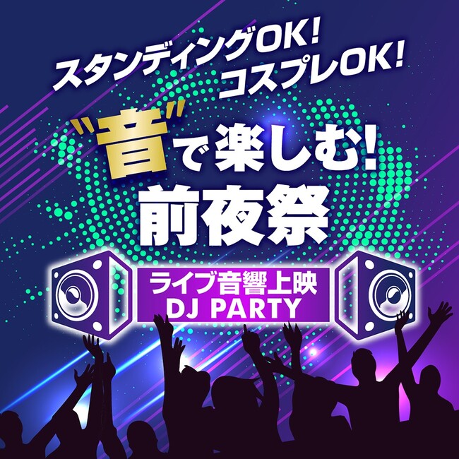 2024年4月3日(水)〜7日(日)「“音”で楽しむ!MOVIX柏の葉映画祭<ライブ音響上映>」の初開催を記念して、4月2日(火)18:30より「“音”で楽しむ前夜祭〜ライブ音響DJ PARTY〜」と題したイベントを開催いたします。ゲストDJ サイバーおかんほかが、シアター内に登壇し、本イベントのために選出した、映画・アニメの人気楽曲を、映画祭のために特設されたライブ・コンサート向けの大規模かつ高品質な音響機器にて、大迫力&ライブ感覚で、“音”を楽しむイベントです。ぜひ、このイベントにご参加頂き、4月3日(水)に開幕となる映画祭を、存分にお楽しみください!