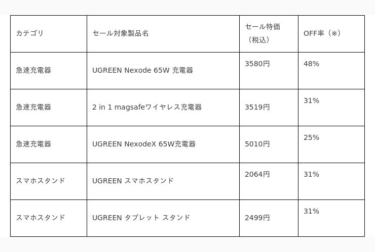 最先端の技術を採用して信頼性の高いPCやスマートフォン周辺機器などを開発・生産しているUGREEN(ユーグリーン) (本社:中国・深セン)は、 2024年3月26日(火)9:00から4月1日(月)23:59まで、「新生活応援セール」において、人気の急速充電器を含むおすすめガジェットセットを最大50%OFFにて販売いたします。