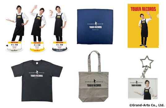 コラボカフェの開催を記念して、タワーレコードエプロン着用のコラボヴィジュアルを使用した限定グッズを販売します。販売店舗は下記のとおりです。