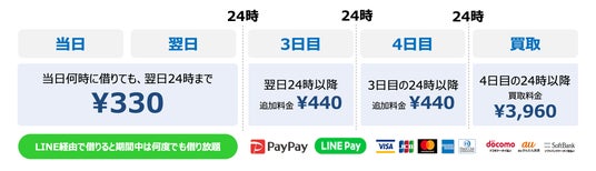 330円(税込)で、レンタル当日から翌日24時までご利用いただけます。(ご返却いただけない場合は自動的に延長・買取料金が課金されます。)