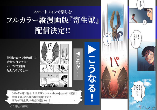 『寄生獣』は、これまでも電子書籍化、フルカラー電子書籍化など、新しい形を提供し続けてきました。今回は新たに、「フルカラー縦漫画」版の配信が決定!
