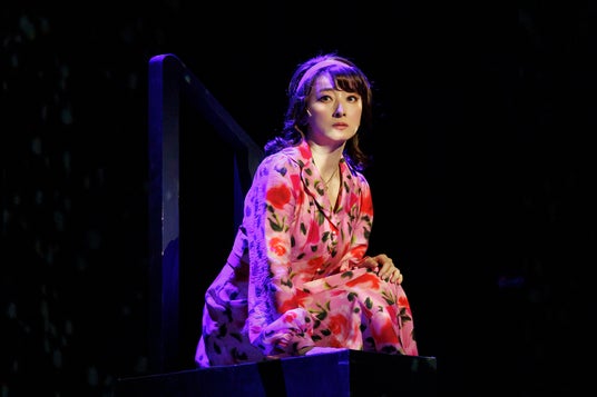 加えて、高さのあるセット、巨大な階段や椅子等、ダイナミックな大道具、装置も駆使して構築するファンタジーな世界観も観ていて楽しい。13人13様のケースで登場する奇妙な事件や出来事、たとえば母親が98人に分裂したり、足首に彫ったタトゥーのライオンが実体化して追いかけて来たり、夫が突然雪だるまに変わってしまったり……。これらは、どこからどこまでが本当に起こったことなのか、あるいはすべてがステイシーの脳内世界の話なのか……?