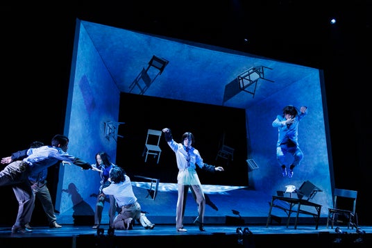 そんなオープニングに代表されるスタイリッシュかつ多彩な演出は、まさに手練れのG2ならではの特長でもある。役者はダンスの振付のような揃った動きで、場面転換中も常に表現にいとまがなく、もちろんこれはストレート・プレイであるのだがある種コンテンポラリー・ダンス的な面白さを味わえるステージにもなっていた。