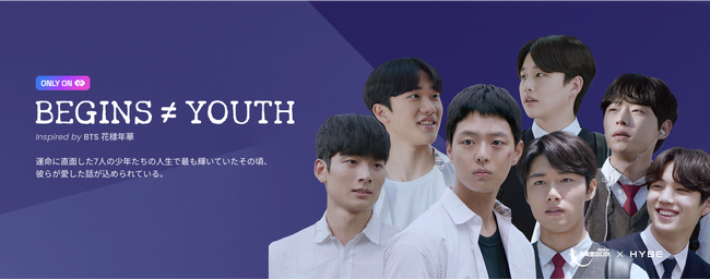 世界的に有名なK-POPアイドルグループ「BTSの花様年華(かようねんか)」を基にした二次創作ドラマ「BEGINS≠YOUTH」がXclusiveで独占配信される。