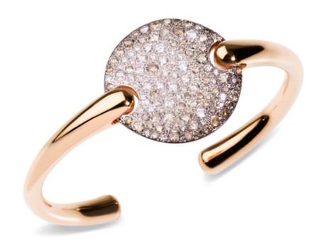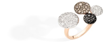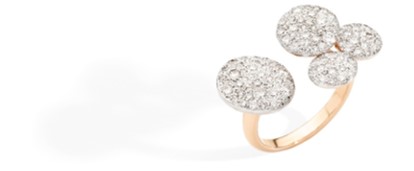 光の反射による輝きと本質的なシェイプに遊び心を加えたいというポメラートの願いを表現している「サッビア」コレクションは、風に舞う砂のように自然の芸術的な輝きを放つ、有機的で洗練されたデザインです。様々なサイズの異なるパヴェストーンを不規則に、そして精密にセッティングし、あらゆる角度からの光を捉えています。