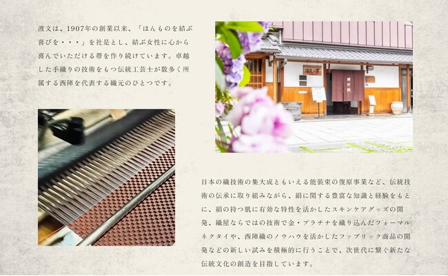 また、ベルトには1907年に創業し、卓越した手織りの技術をもつ西陣織の名門、京都・『渡文』