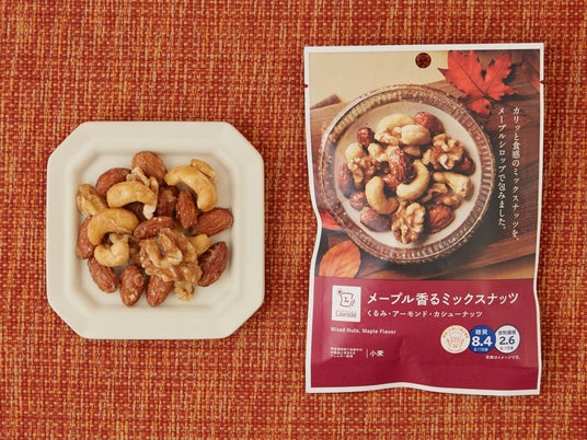 メープル香るミックスナッツカリッと食感のミックスナッツをメープルシロップで包みました。
