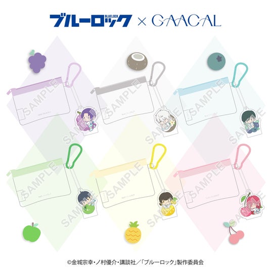 3.ブルーロック×GAACAL ミニクリアポーチ チャーム付き フルーツver. 全6種1,320円(税込)コスメや小物類を収納できるミニポーチです。