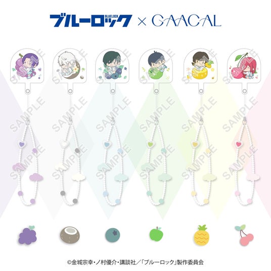 1.ブルーロック×GAACAL ビーズストラップホルダー付き フルーツver. 全6種 各1,760円(税込)スマホに差し込むだけで可愛いビーズストラップに変身。