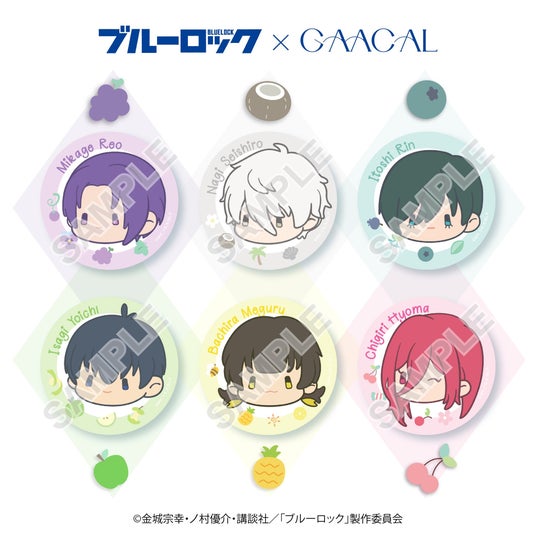 本コラボグッズでは、TVアニメ『ブルーロック』から、『潔 世一』、『蜂楽 廻』、『千切 豹馬』、『凪 誠士郎』、『御影 玲王』、『糸師 凛』の6名がフルーツに扮して愛らしいミニキャラとして登場します。