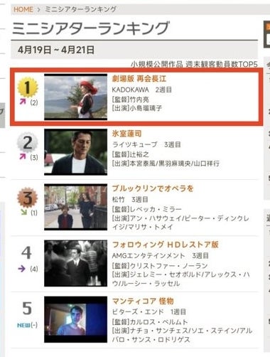 ★公開以降、ミニシアターランキング(4/19〜4/21)で1位を獲得しました。