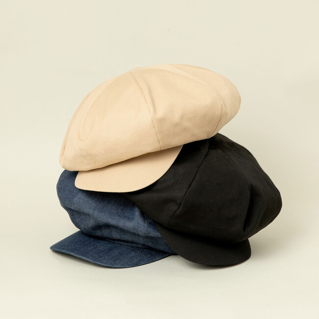 劇中でジョン・レノンがかぶっている、象徴的なビッグシルエットのキャスケットをモチーフに製作。菊穴やステッチなどの装飾要素を排した、シンプルなキャスケットに仕上げました。使い込むほどに経年変化の楽しめる、コットンキャンバスとデニムの2素材をご用意しています。
