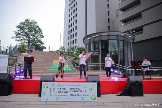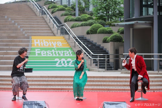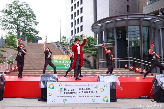 東京・東京ミッドタウン日比谷周辺で開催された、日比谷の緑や自然とともに楽しむエンターテインメントの祭典「Hibiya Festival 2024」ステップショーのイベントレポートが到着!ホリプロステージ作品4作品が参加、パフォーマンスやトークで観客と配信視聴者を盛り上げた。(撮影:山本春花)