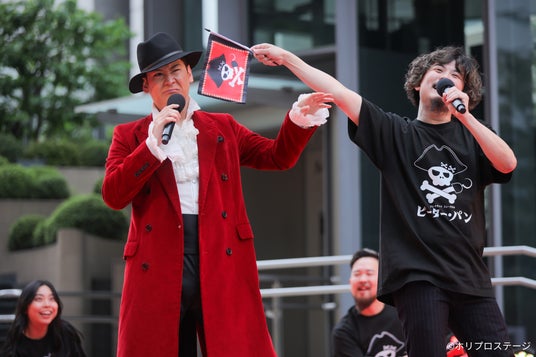 冒頭から披露されたのは、フック船長として2年目を迎える小野田龍之介率いるパイレーツ一味による「♪フックのワルツ」のパフォーマンス。小野田のダンディな歌唱とパイレーツたちの息の合った掛け合いで観客をおおいに盛り上げた。