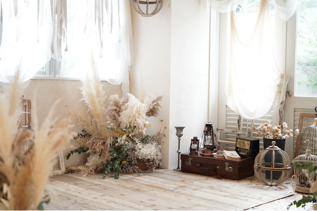 100ヵ所以上のフォトスタジオのスタイリングを手掛けてきた女性デザイナーがトータルプロデュースするスタジオコフレは、こだわりのコンセプトを基にひとつひとつ手作業で内装を施工。お店ごとに異なるスタジオが楽しめるのが大きな特長のひとつです。